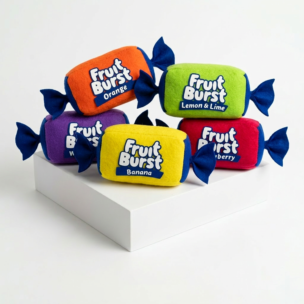 Experience your favourite kiwi lollies in a tangible and huggable way, with our new and original Fruit Burst inspired art plush.