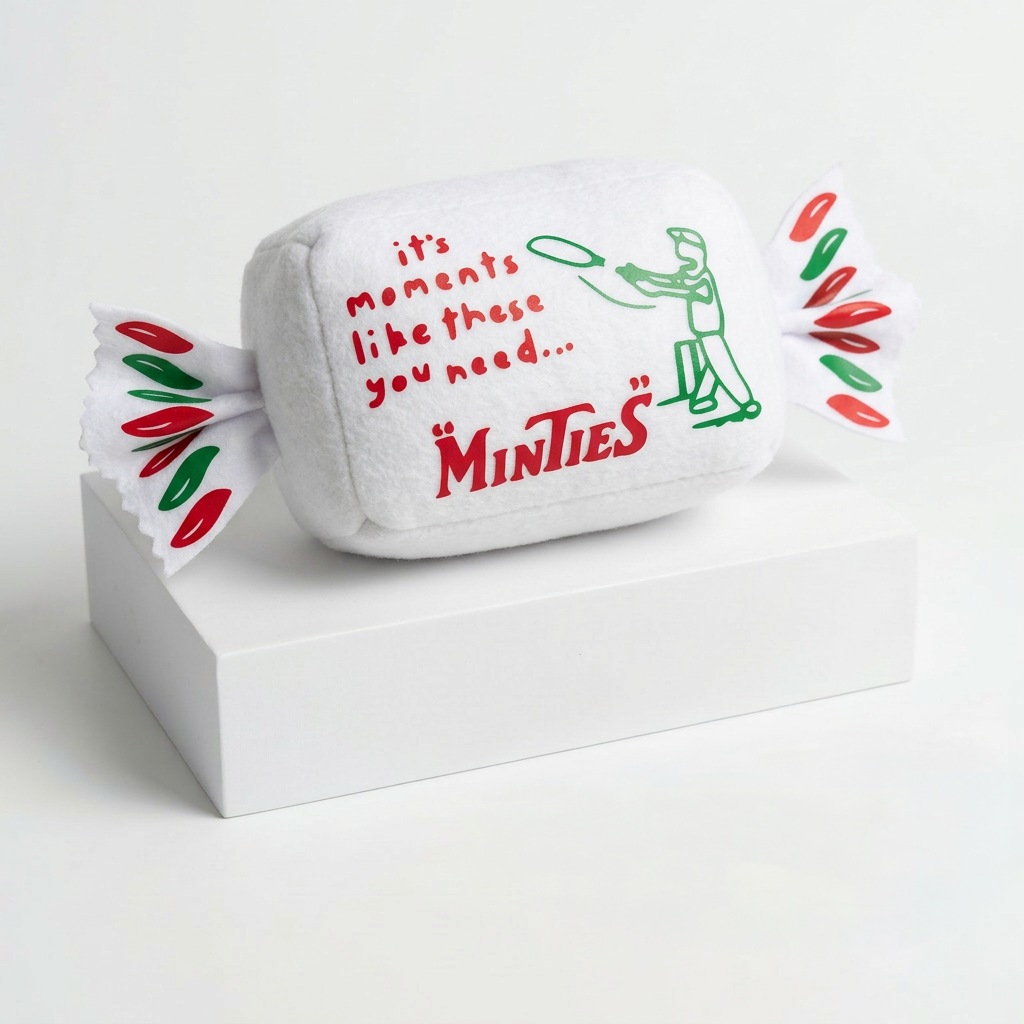 Experience your favourite kiwi lollies in a tangible and huggable way, and complete the Lolly Scramble set with our new and original Minties inspired art plush.